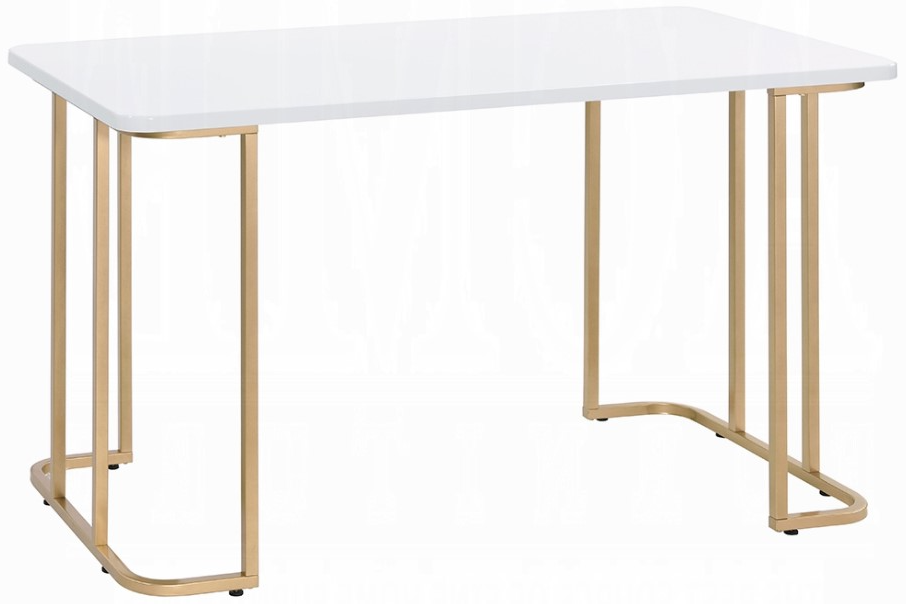 Personify your workplace with some bold, clear and strong accessories. The Estie Writing Desk boasts a clean-lined metal sled base, with gold finish enhancing its modern silhouette. White rectangle table top offers a spacious and clean workplace. The Estie Writing Desk will set the tone for the whole space.Read More