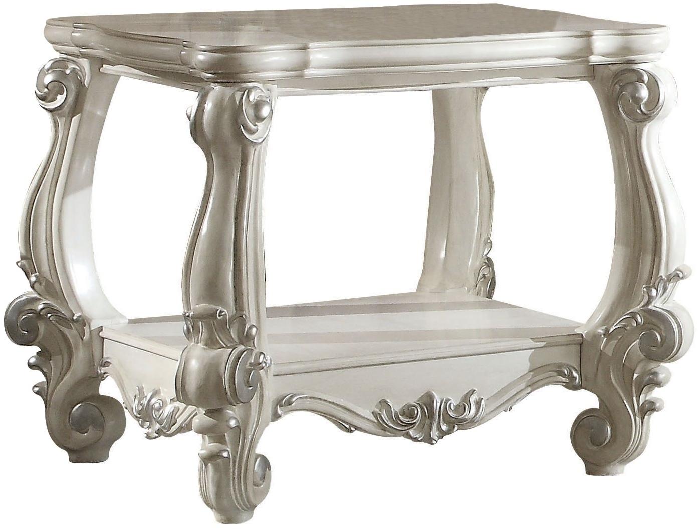 The Versailles bone white end table exudes timeless elegance with intricate carvings and scrolled legs. Crafted from high-quality wood, it features a smooth bone-white finish and offers a lower shelf for added storage or display, enhancing both beauty and functionality.Read More