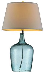 Beautiful translucent blue base combined with the ivory shade brings coastal flare to any contemporary space. This table lamp provides warm, practical lighting for bedrooms, living rooms, or workspaces.Read More
